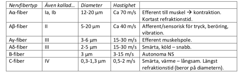 vilka olika nervfiber finns?