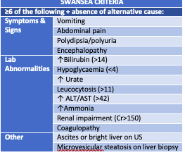 Ix: abnormal LFT, hypoglycaemia, coagulopathy, hyperbilirubinaemia, AKI, increased urate, increased ammonia, ascites on US
