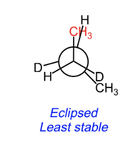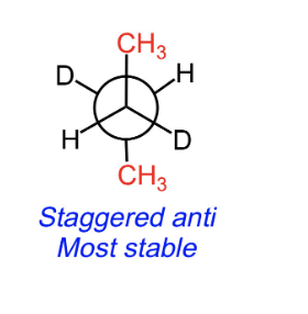 the staggered anti conformation is _________ than the staggered gauche and eclipsed conformations