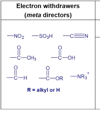 electron withdrawers ( meta directors )