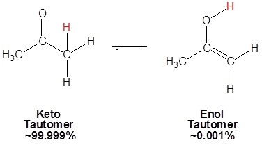 The keto and enol forms are in an equilibrium with one another that strongly favors the keto form at room temperature