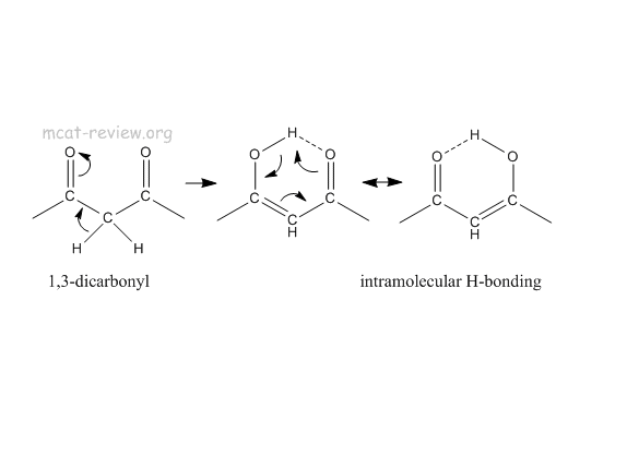 The MCAT loves alpha hydrogens so much, it wouldn’t be right to mention 1,3-dicarbonyls without also pointing out that they have ULTRA ACIDIC alpha protons on the carbon between the two carbonyl carbons