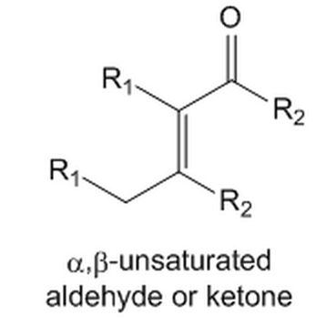 An aldehyde or ketone with a double bond between the alpha and beta carbons
