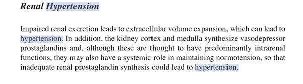 1) Impaired sodium and water excretion, thereby increasing blood volume