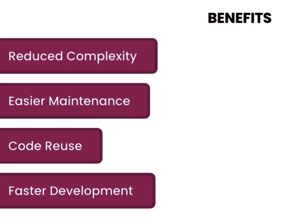 We can break a large application into smaller parts, we can focus on code for that object.