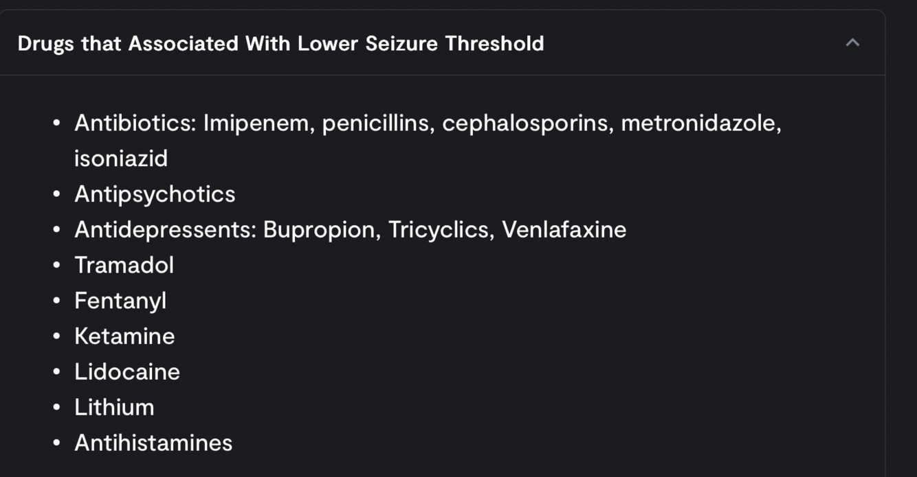 med that reduces seizure threshold