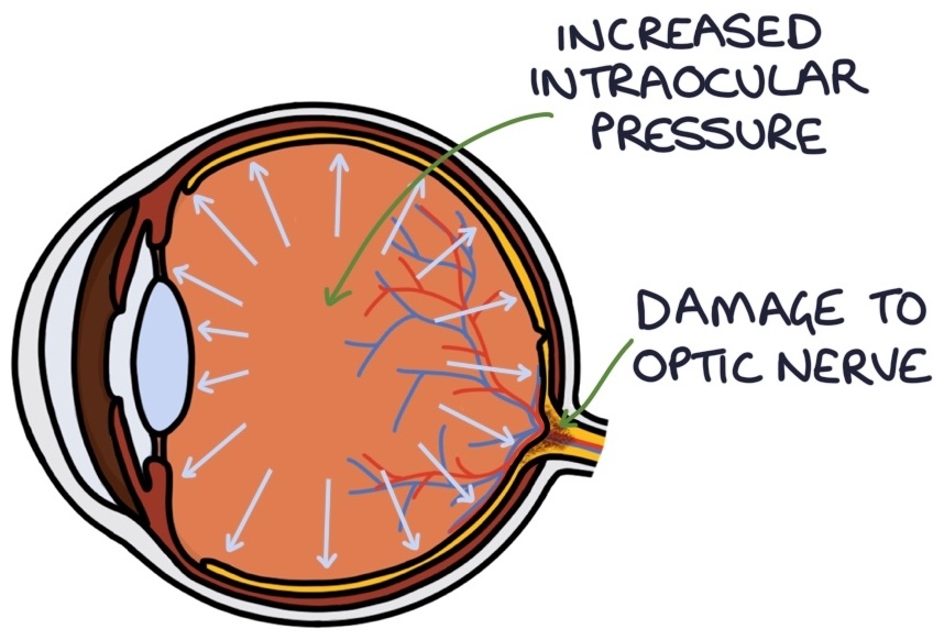 Glaucoma refers to the optic nerve damage that is caused by a significant rise in intraocular pressure. The raised intraocular pressure is caused by a blockage in aqueous humour trying to escape the eye.