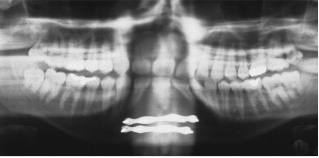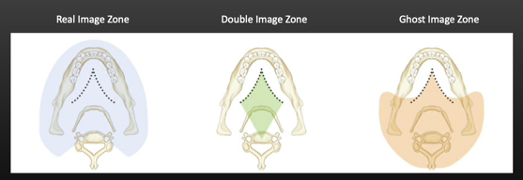 Objects that lie posterior to the centre of the xray beam go through the centre of the beam twice and form a double image or mirror image appearing on the same location but on both right and left sides