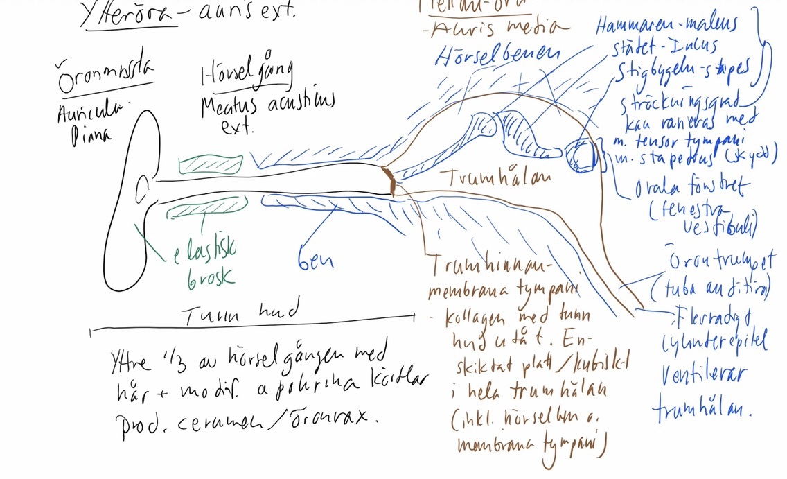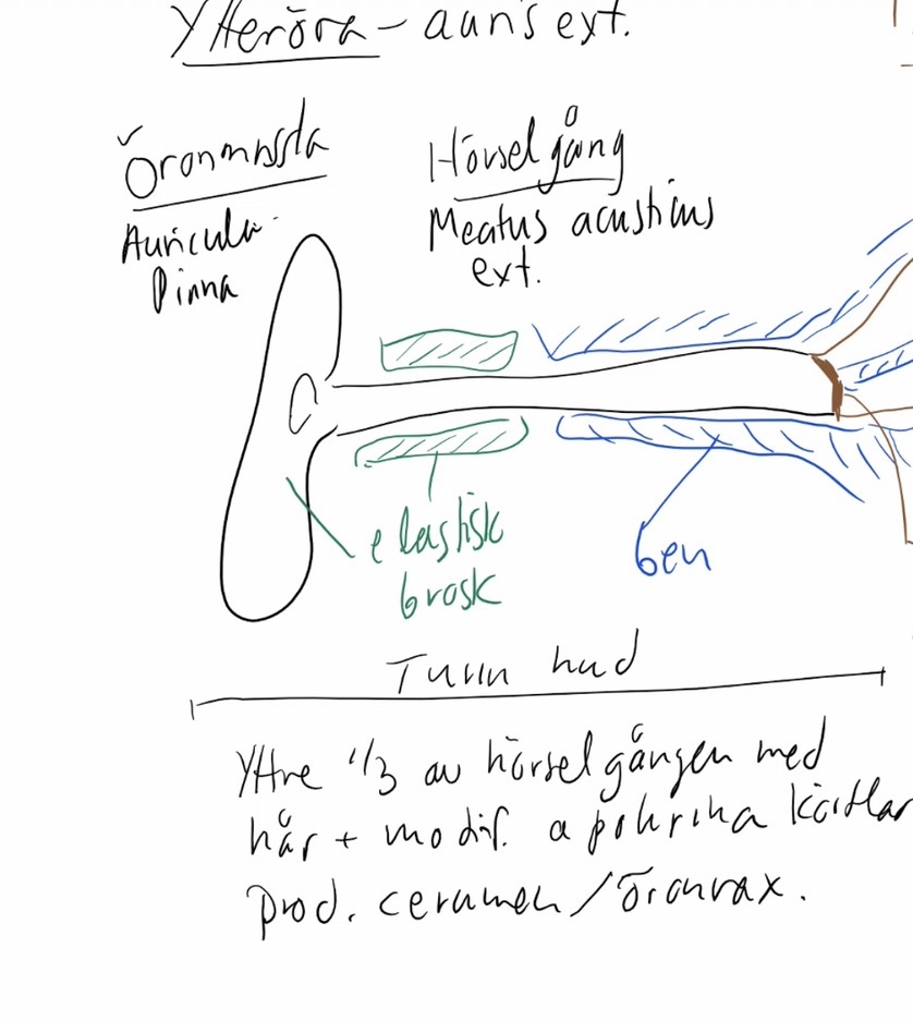 Hur är ytterörat (auris externa) uppbyggt?