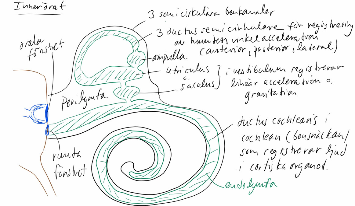 Hur är innerörat (auris interna) uppbyggt?