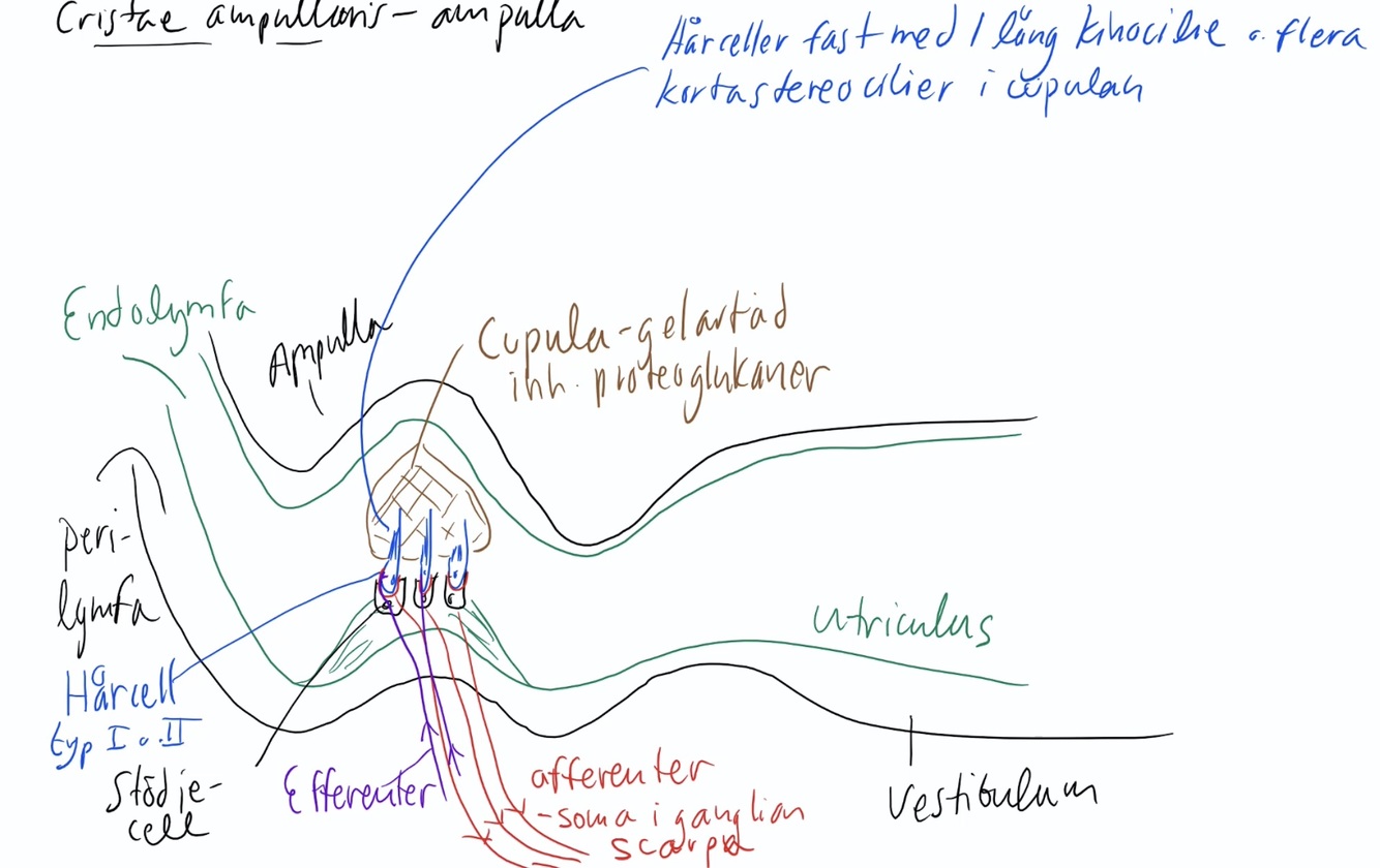 Afferenter vidare till CN8 med soma i ganglion scarpa (vestibularis)