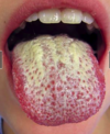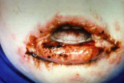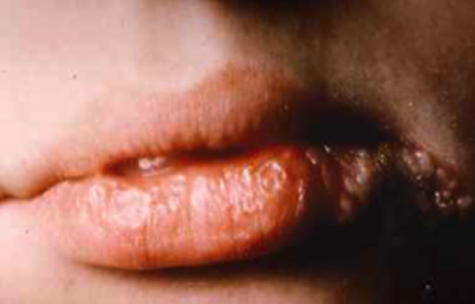 Vesicles and ulcers on lips, buccal mucosa and hard palate