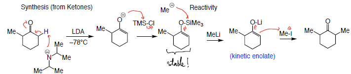 Used as a precursor for specific enolates, generated at a particular site not necessarily governed by the acidity of the enolisable α-protons
