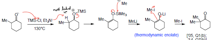 TMSCl and Et3N @ 130ºC to make the sinyl enol ether