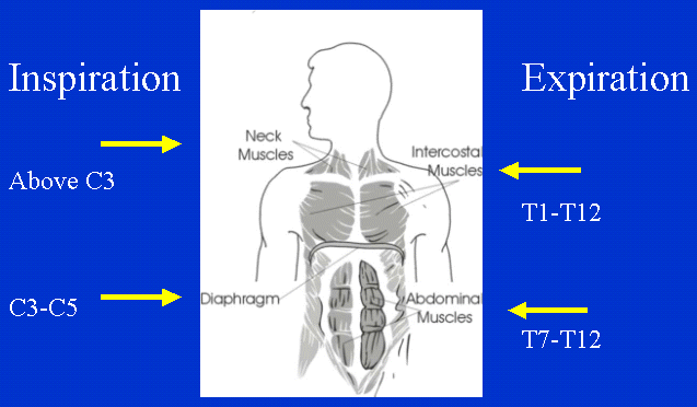 Trauma patient with a cervical spine injury at or near C3 to C5 is at great risk for