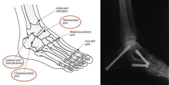 During a triple arthrodesis, the capsule of the talonavicular, calcaneocuboid and subtalar joints are circumferentially incised to