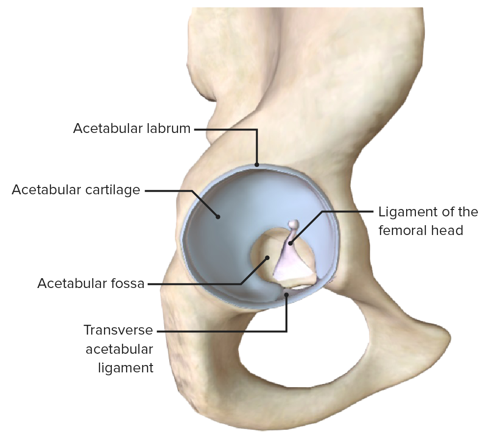 What is the fibrocartilage structure of the acetabular fossa that encloses the head of the femur
