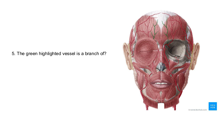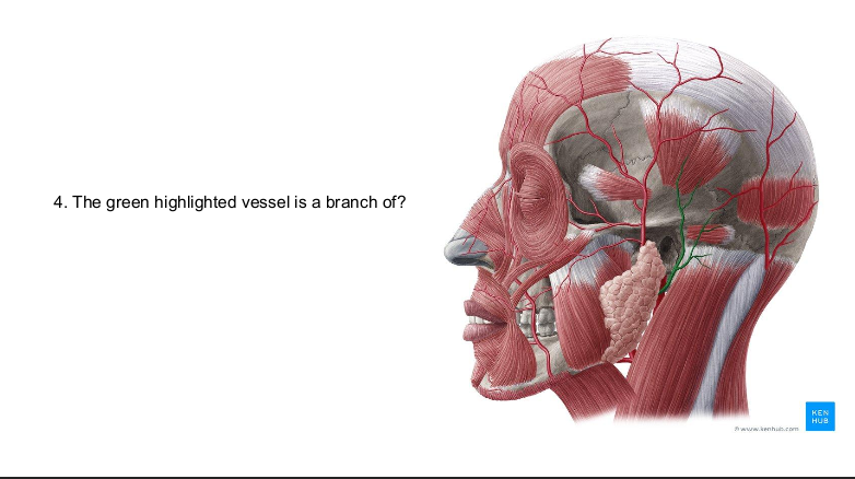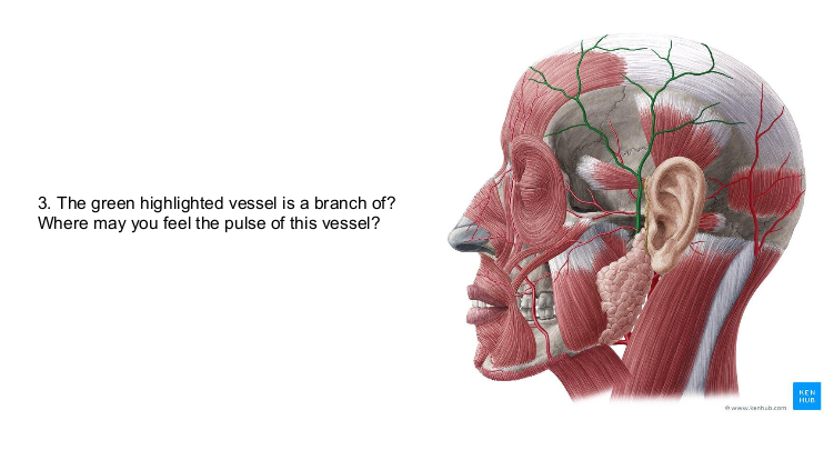 highlighted vessel = superficial temporal artery, branch of external carotid artery