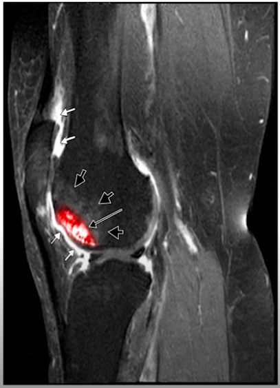 Sclerosis (hardening) and cyst formation to the subchondral bone