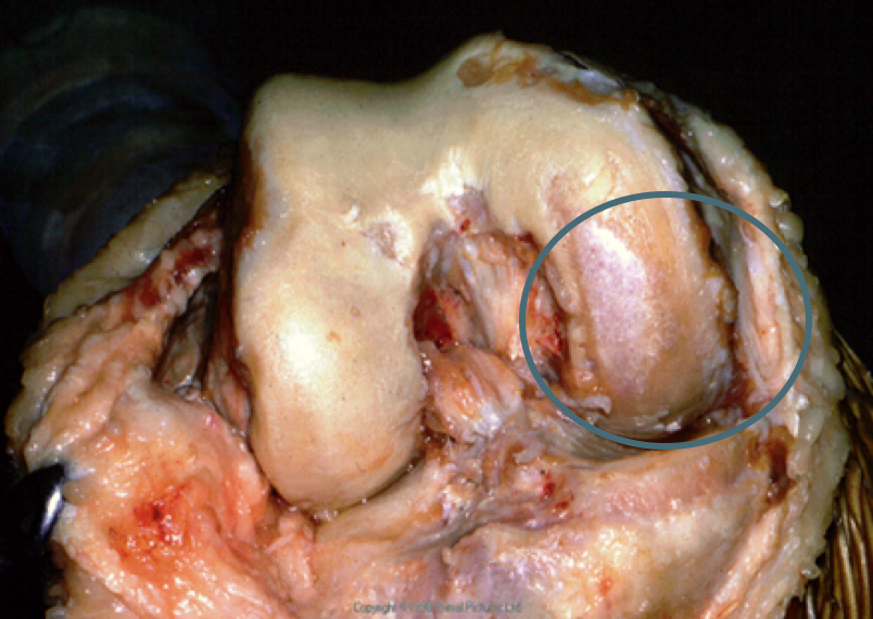[in circled area] cartilage has completley worn away