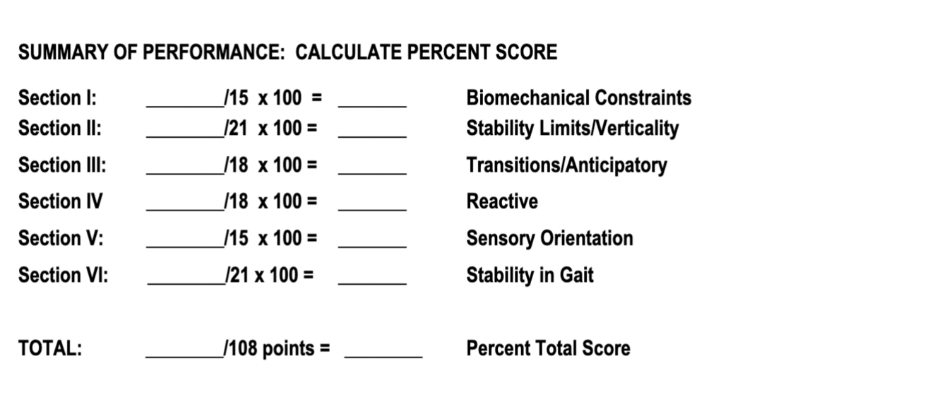 Tests: Biomechanical/ Stability Limits, Postural Responses, Anticipatory Postural Adjustments, Sensory Orientation, and Dynamic Balance during Gait and Cognitive Effects
