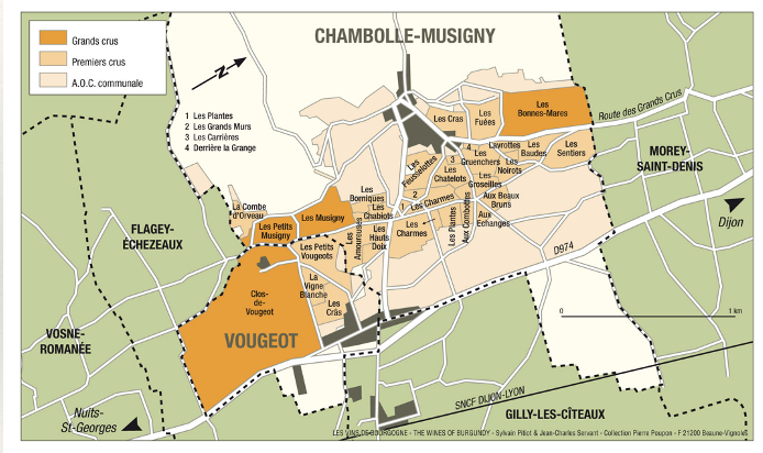 List the 2 Grand Cru vineyards in Chambolle-Musigny