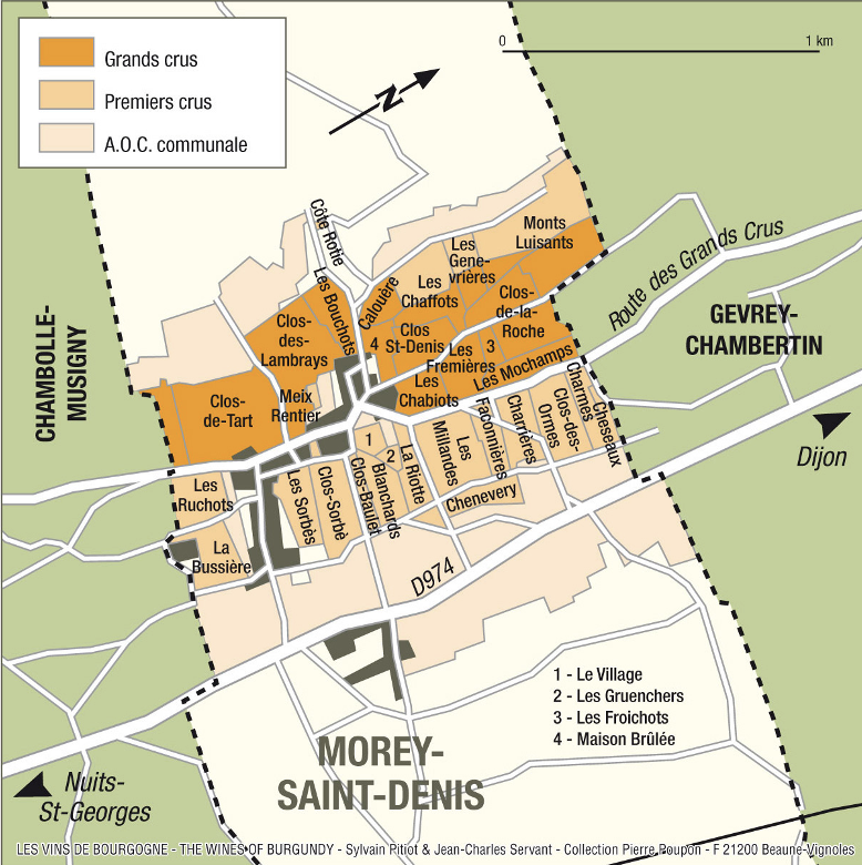List 2 Premier Cru vineyards in Morey-Saint Denis.