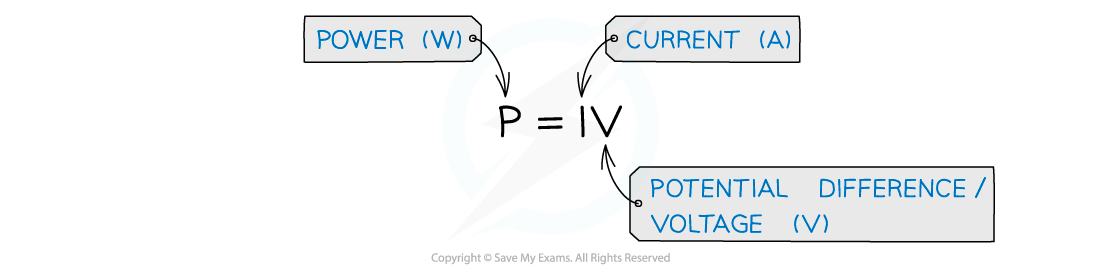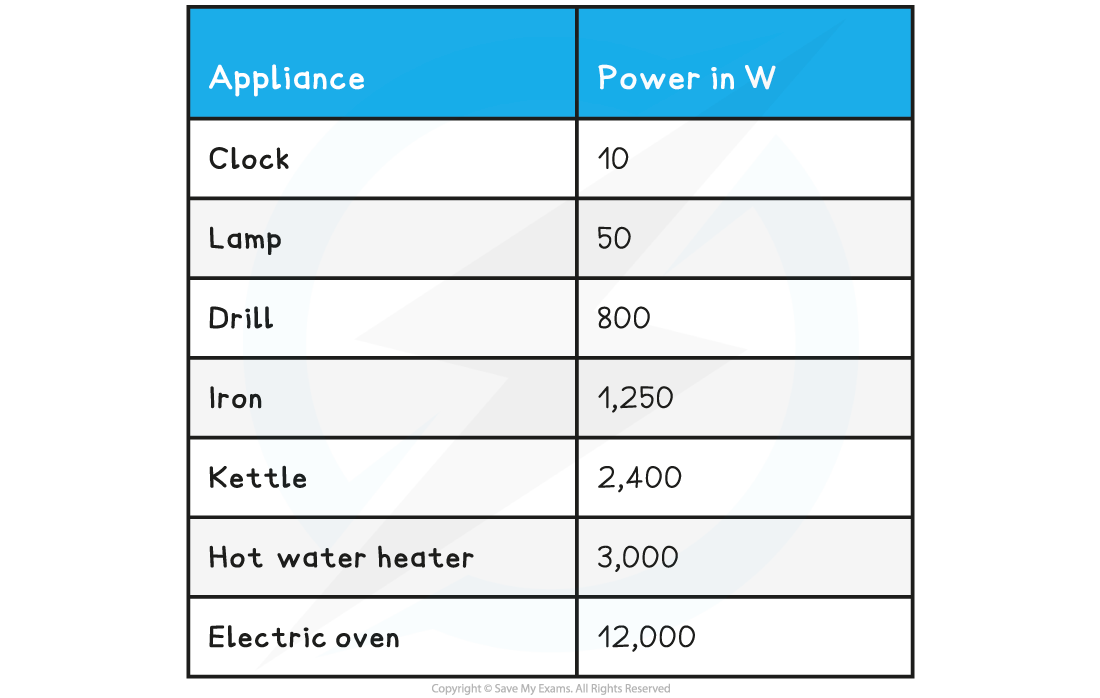 The amount of energy transferred depends on the power (the energy transferred each second) and the amount of time the appliance is switched on for. The energy transferred by an appliance can be calculated using the equation:
