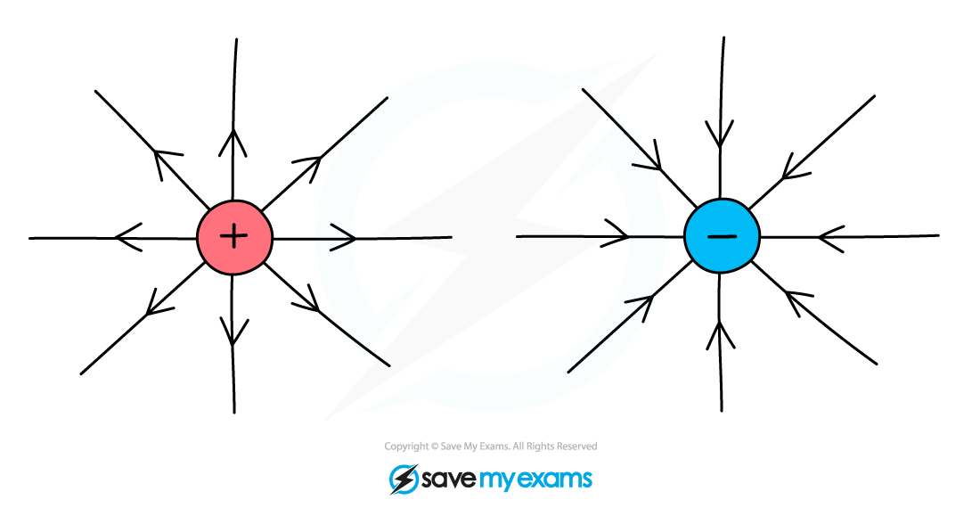 * The field is **strongest** **close** to the **charged object** - this is shown by the field lines being **closer together** * The field becomes **weaker further away** from the charged object - this is shown by the field lines becoming **further apart**