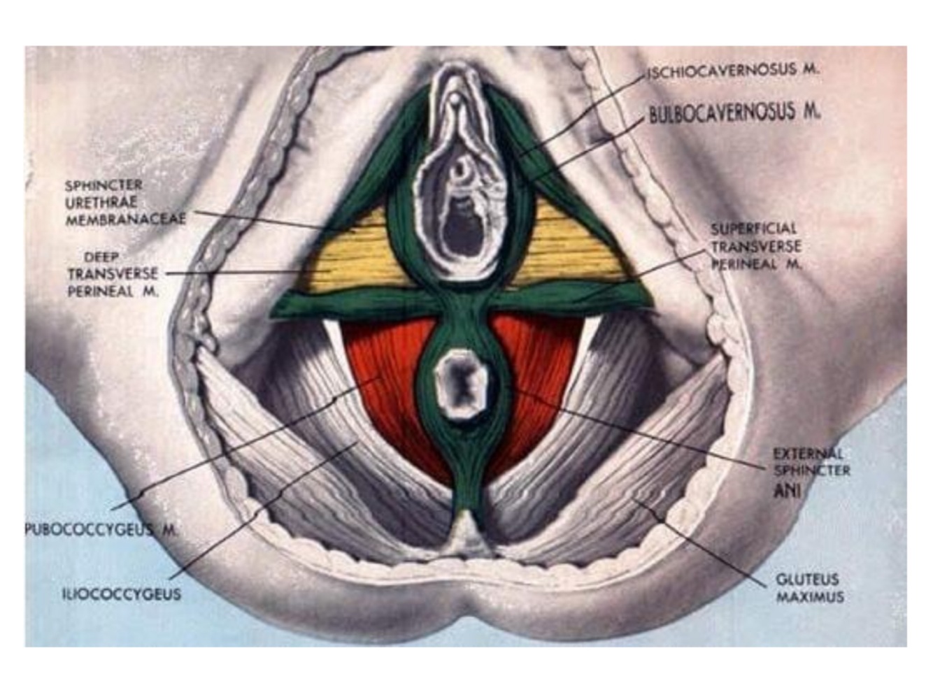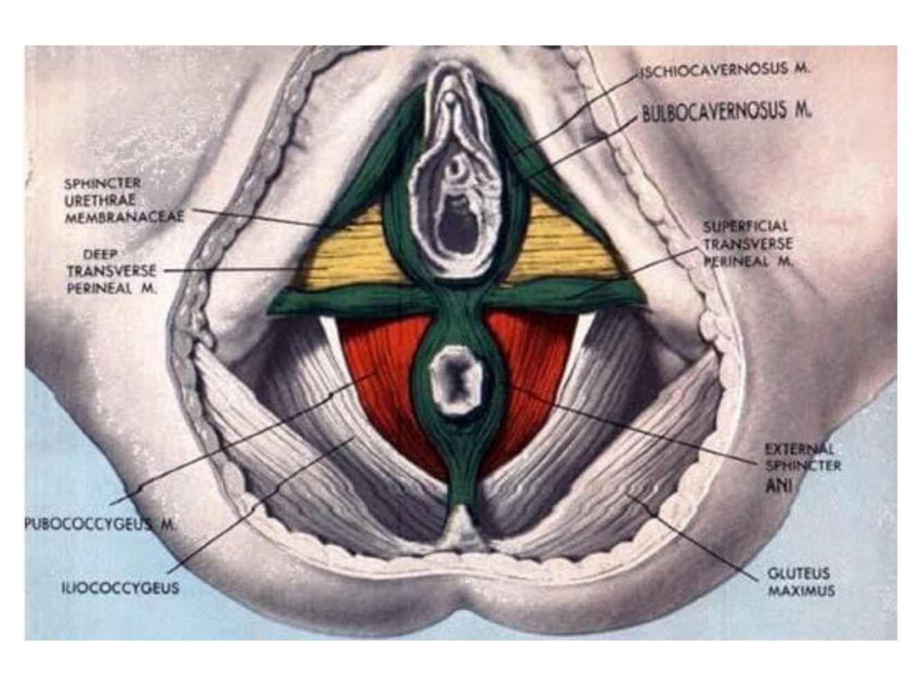 spessafasciamuscolarechedecorredalcentrotendineoal legamento ano-coccigeo.