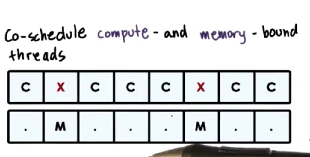 Scheduling a mix of memory and CPU intensive threads allows us to avoid or at least limit the contention on the processor pipeline and helps to ensure utilization across both the CPU and the memory components.