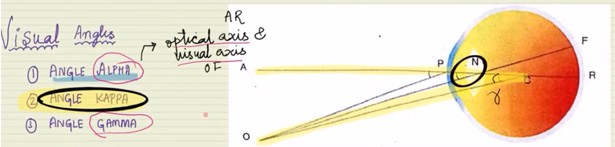 angle a - bet optical / pupillary axis and visual axis - at nodal point