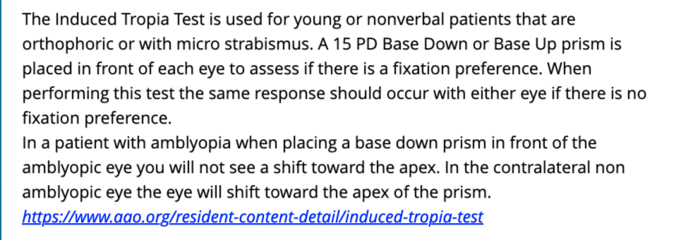 what is induced tropia test