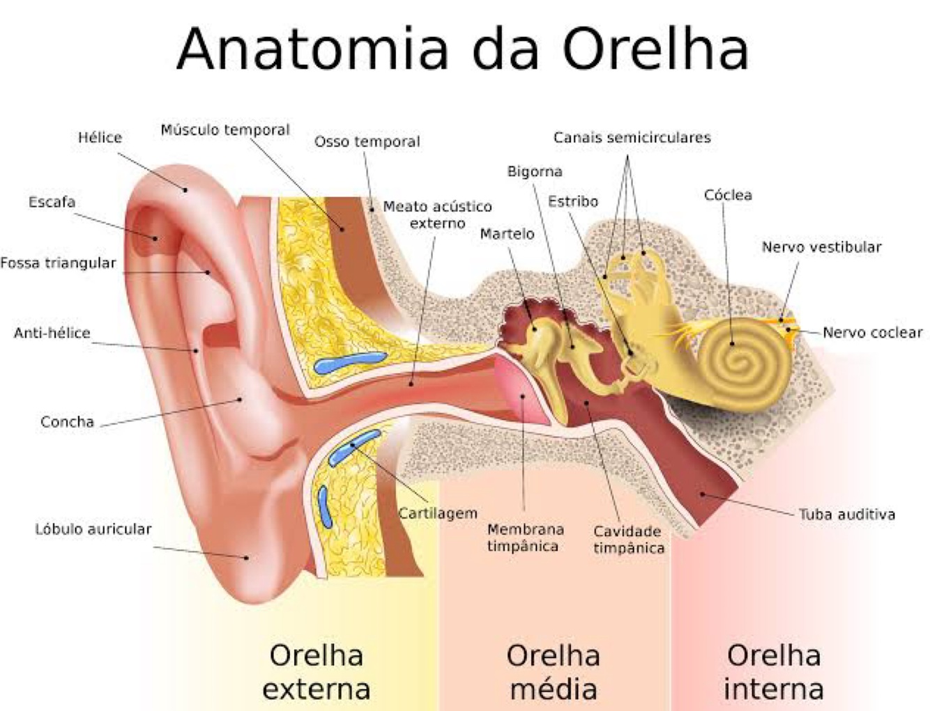 Ouvido externo, ouvido médio, ouvido interno