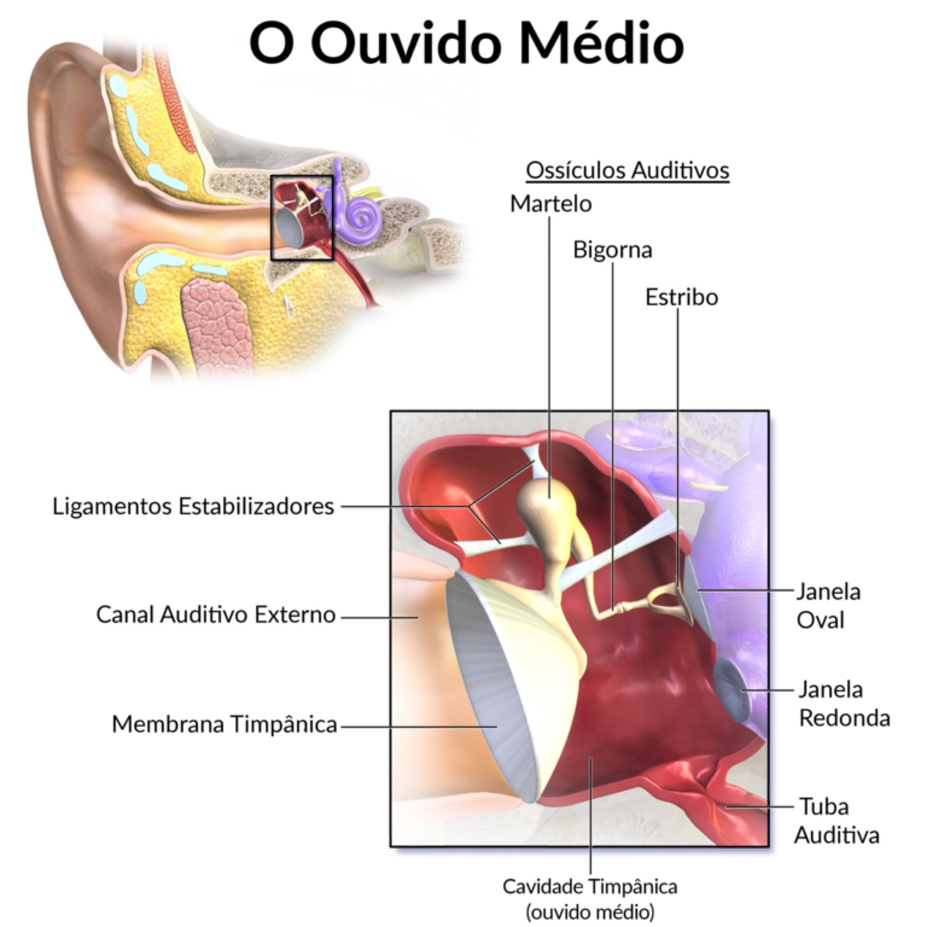 Quais são as estruturas do ouvido médio?
