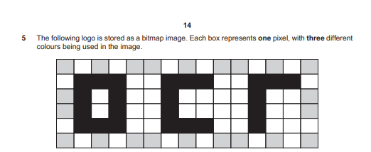 (b) Calculate the fewest number of bits that could be used to store the logo as a bitmap image. You must show your working. [4]
