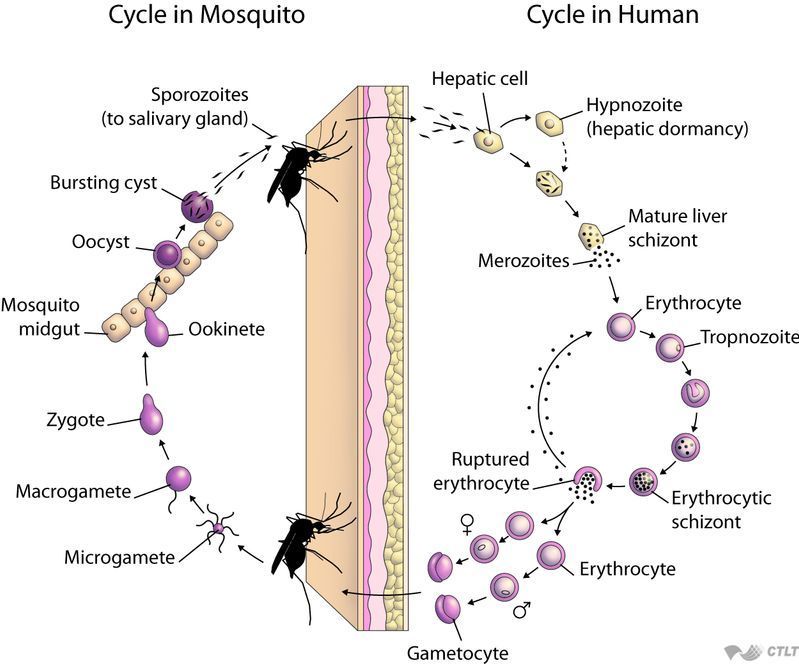Intermediate = harbors the larval (asexual) stage of the parasite