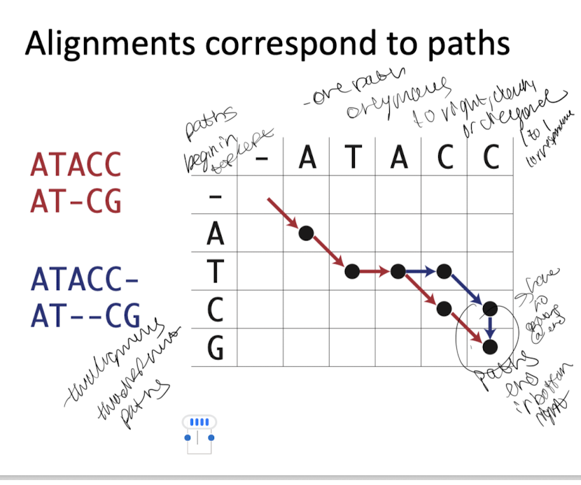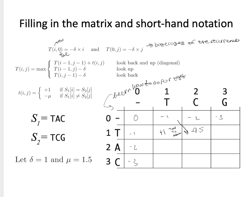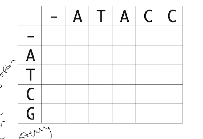 if two sequences have length n and m then we have nm rows and cols with one more row and one more col for an added space at the beginning of each sequence