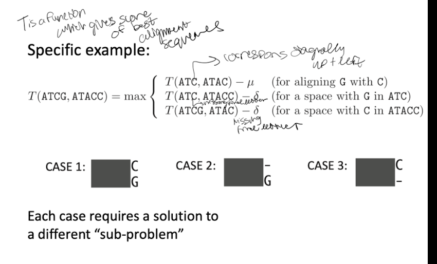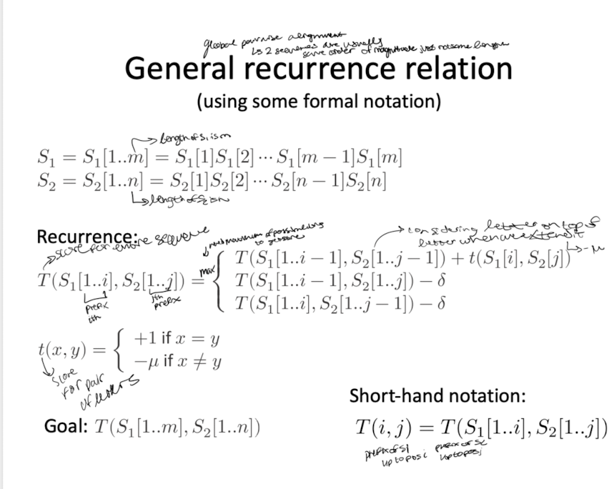 If T is a function that gives the score of the best alignment sequence what is the first step to formalization?