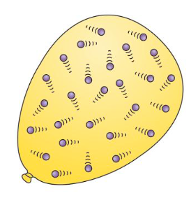 gas particles (air) inside the balloon heat up = particles move faster = more collisions = more pressure on the balloon’s walls = the rubber balloon stretches until it bursts