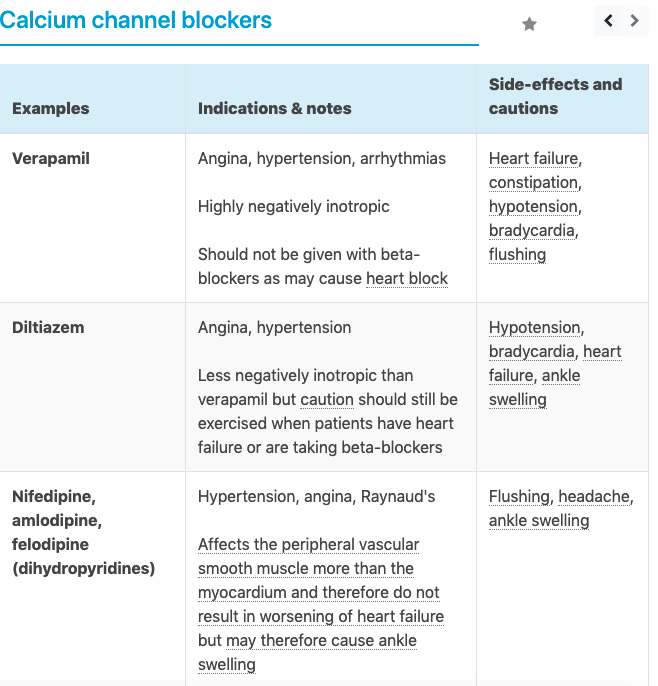 Note CCB’s (with exception of amlodipine) should be avoided in heart failure as can further depress cardiac function & lead to HF.