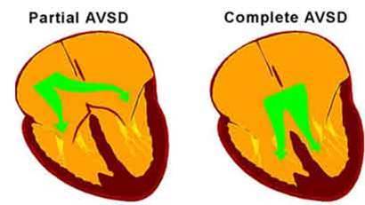 –> partial consists of primum ASD and a cleft anterior mitral leaflet, causing MITRAL INSUFFICIENCY