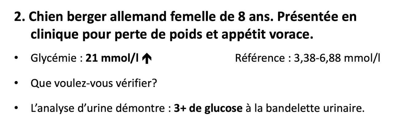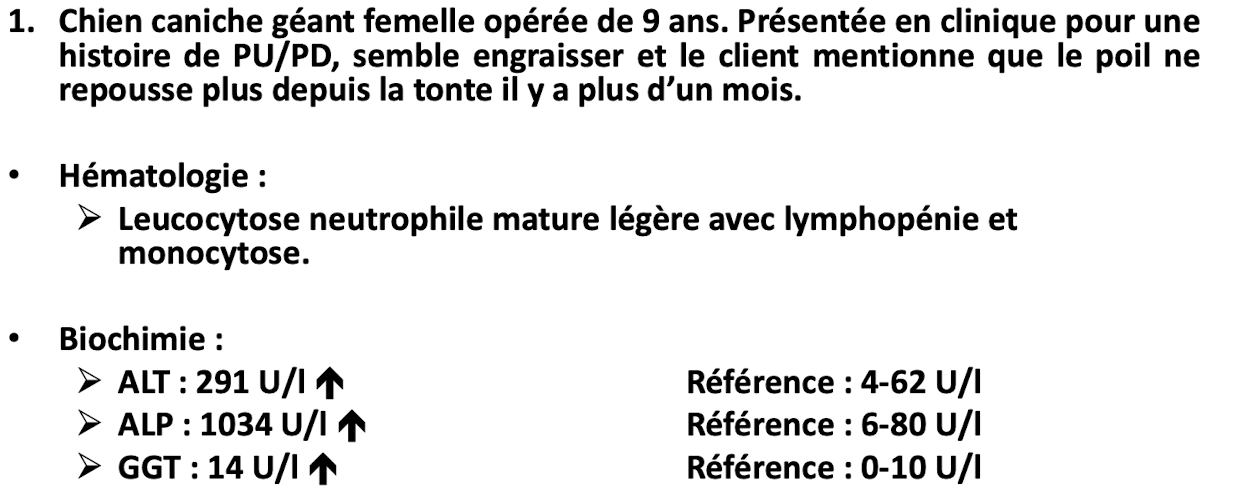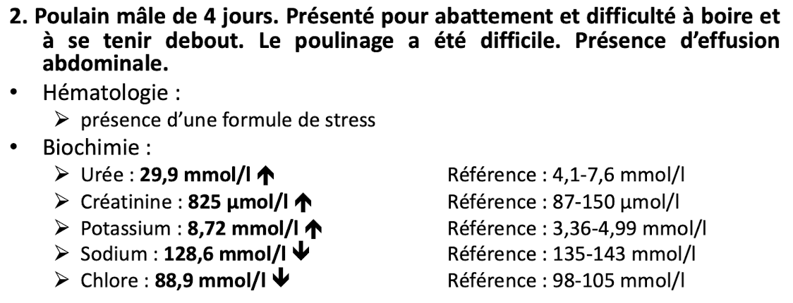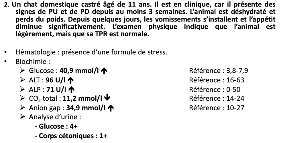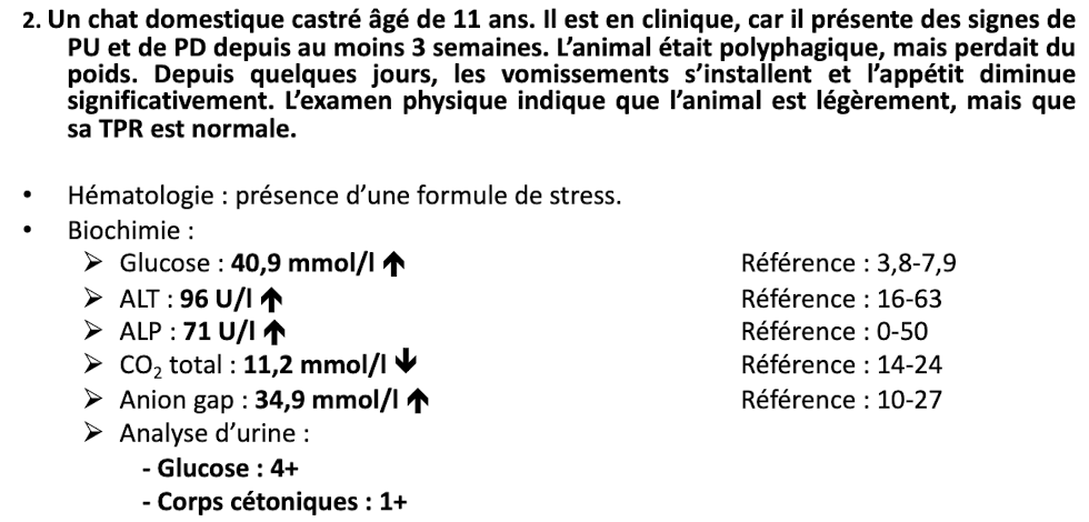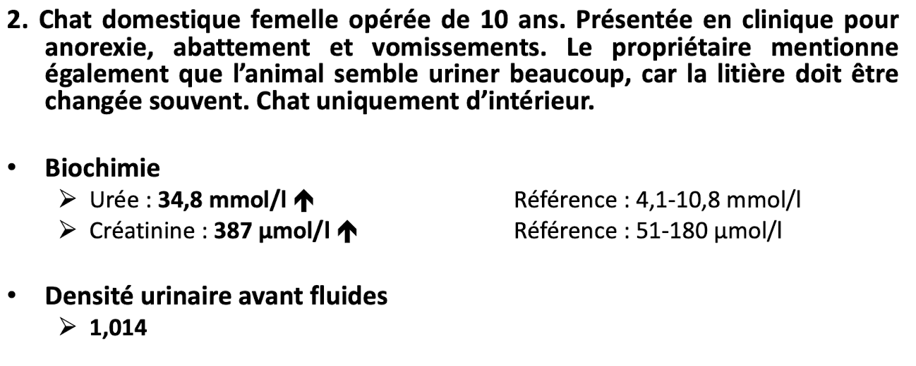 Selon les signes cliniques, qu’est-ce qui semble le mieux expliquer les changements biochimiques et urologique de l’animal ?