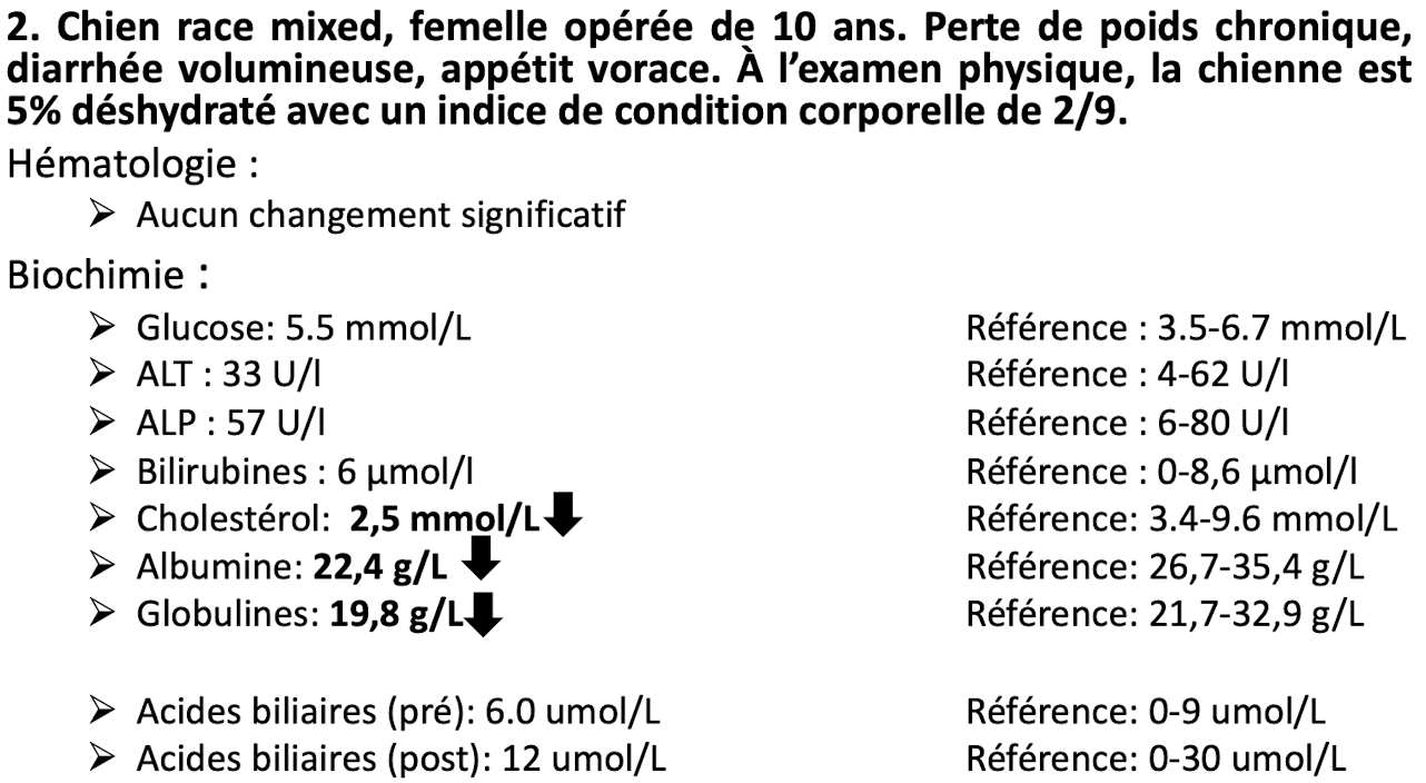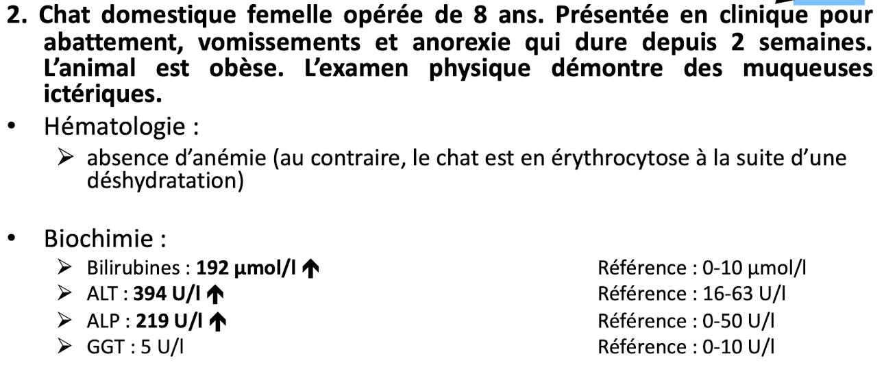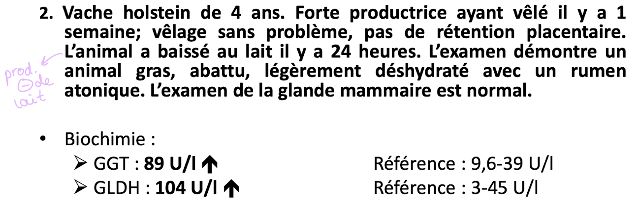 2) seulement des dommages hépatocellulaires, puisque le GGT n’est pas sensible chez la vache