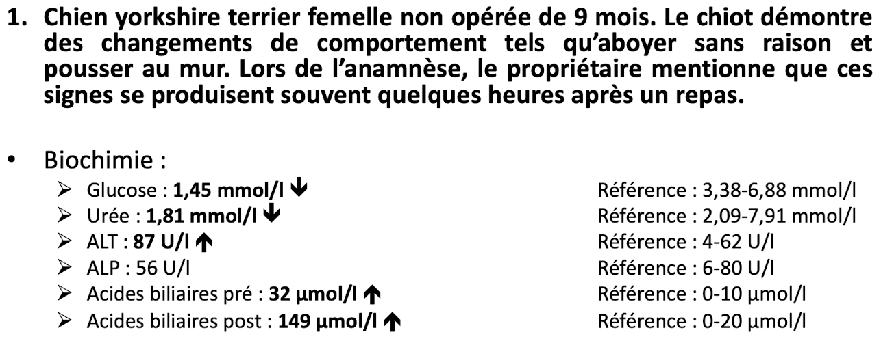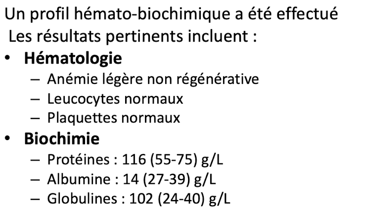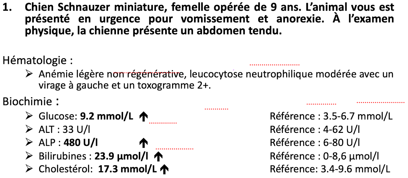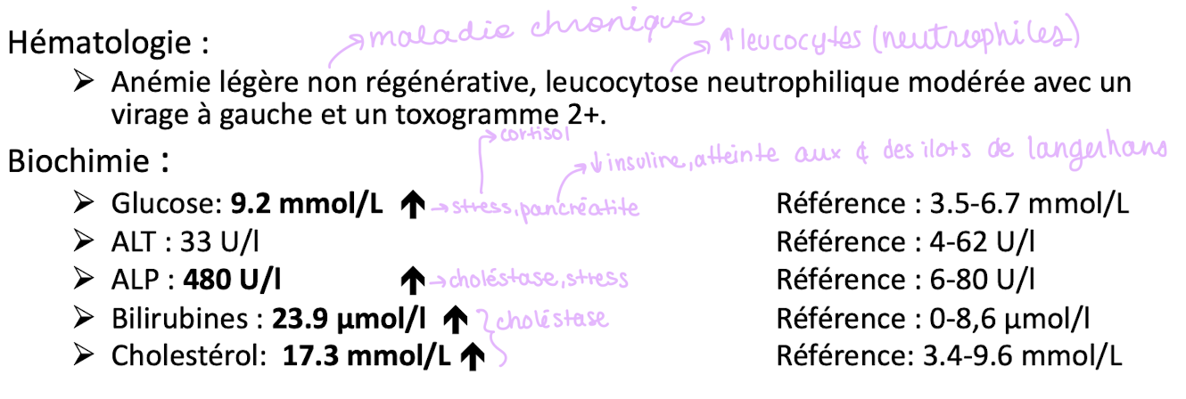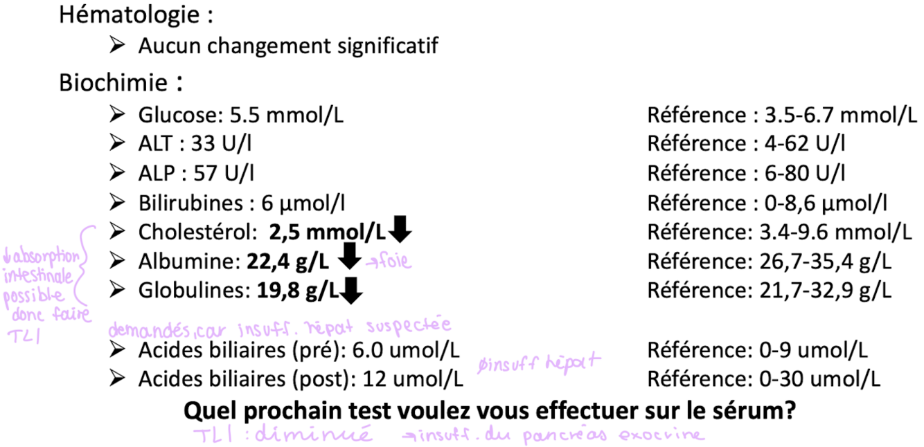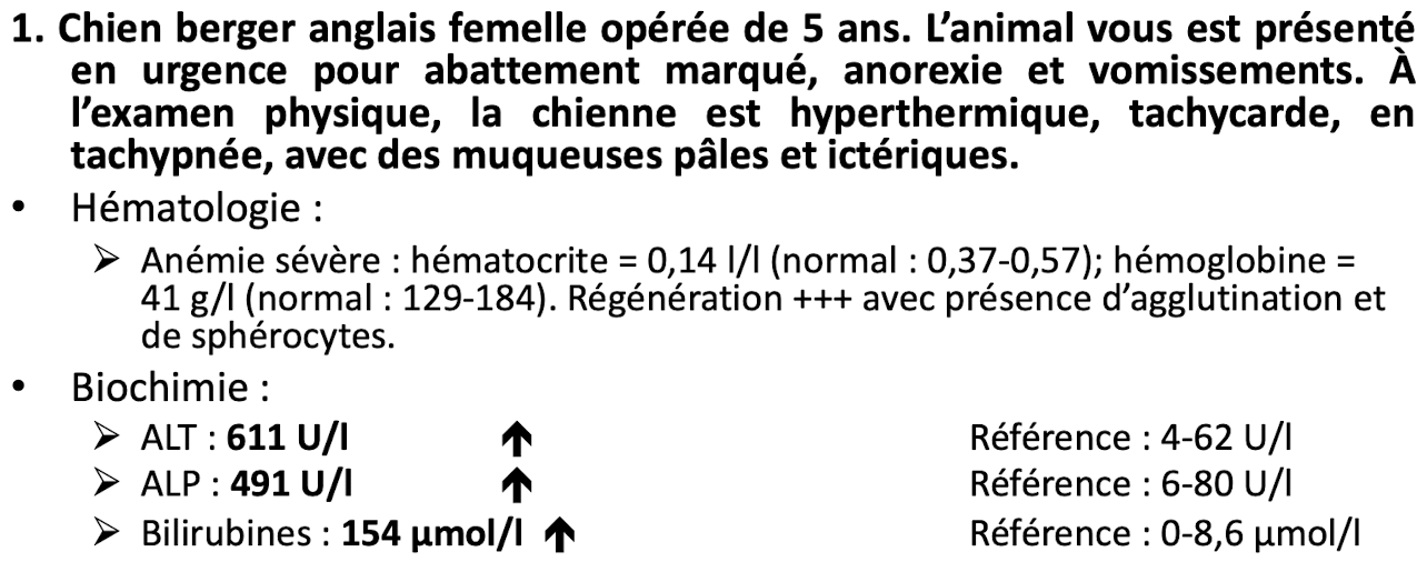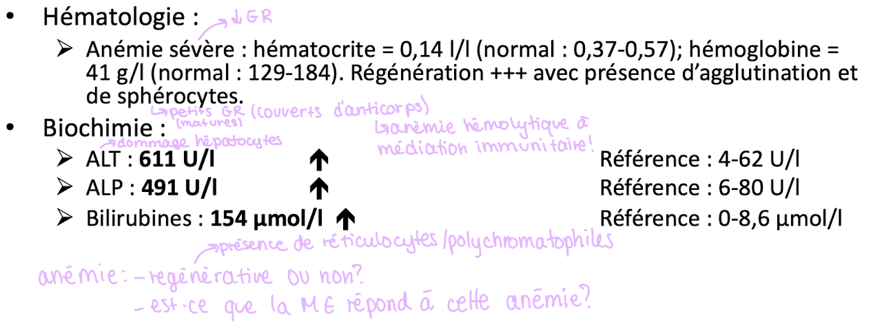 Quel serait le no 1 sur votre liste de différentiels étant donné les changements biochimiques ET hématologie ET les signes cliniques ?