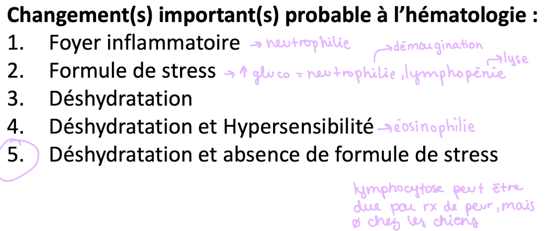 changements importants probables à l’hmatologie :