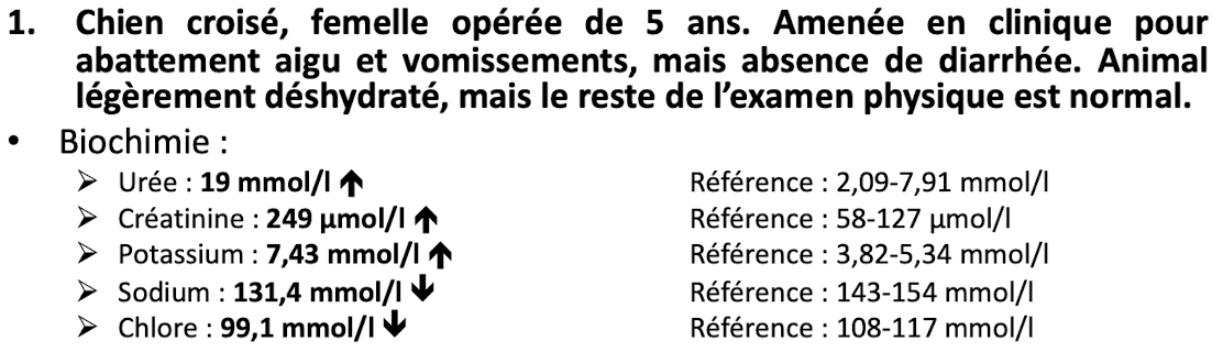 insuffisance rénale aigue ou hypoadrénocorticisme