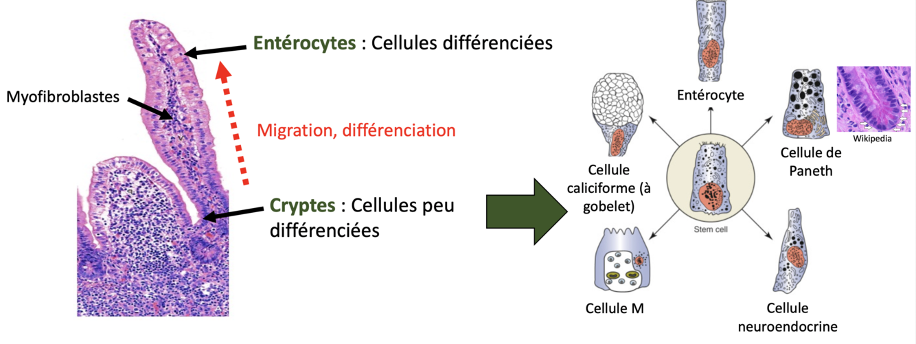 Dans les cryptes (=cellules épithéliales peu différenciées)