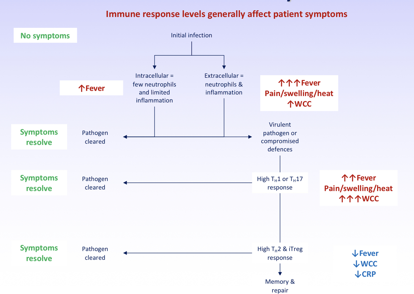 1- Symptoms and signs of infection are a product of what? What does this mean?