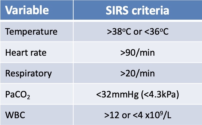 > SIRS defined as two or more these in the same patient